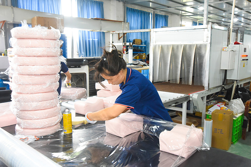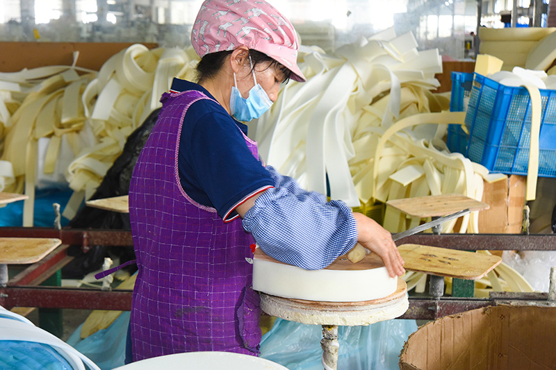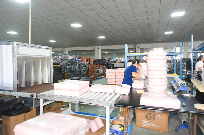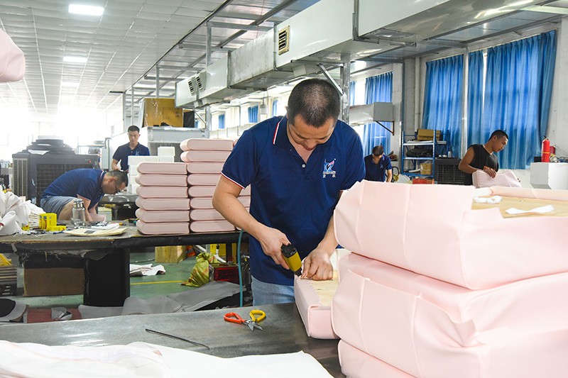 De bankwerkplaats beschikt over een volledige verwerkingsstroom voor stoffering, waardoor een geïntegreerde productie mogelijk is, van structurele componenten tot oppervlakteleer, waardoor een stabiele kwaliteit en uniforme details in elk product worden gegarandeerd.